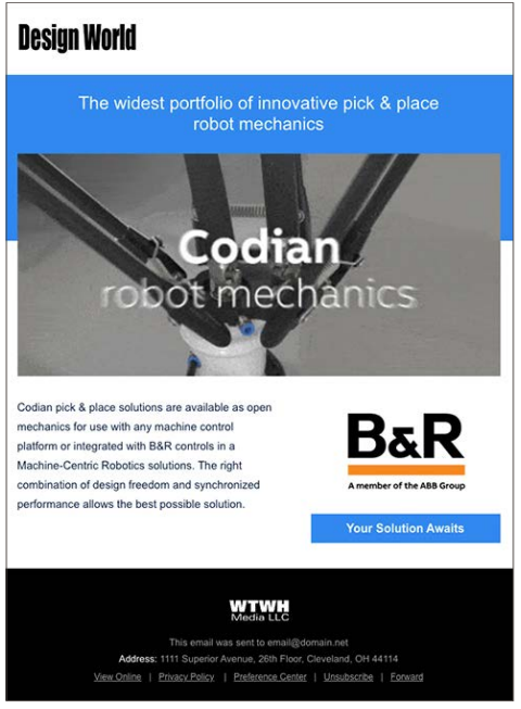 - Promotion in Design World and Motion Control Tips e-newsletters.